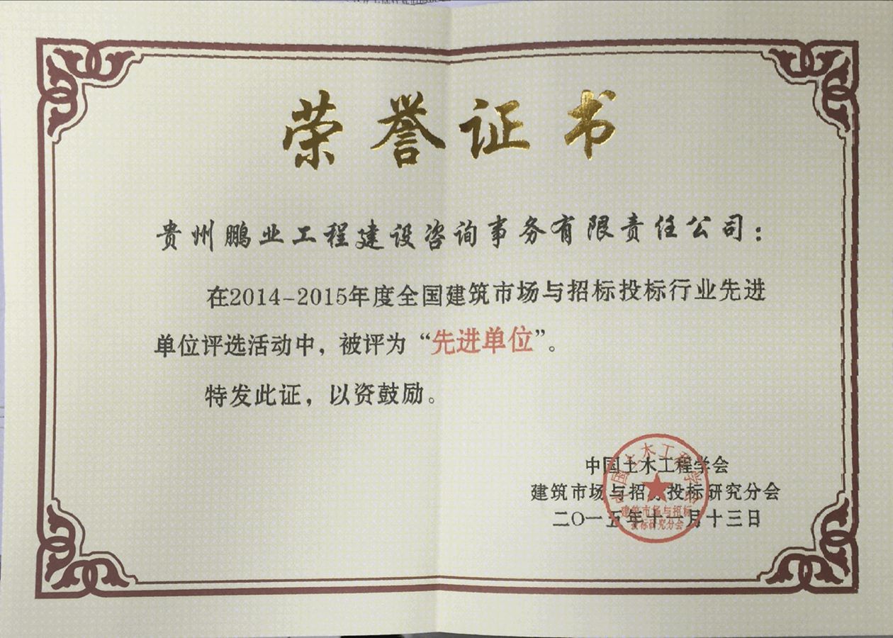 獲得2014年度貴州省工程招標代理行業“誠信自律